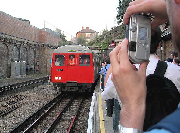 The last advertised train arriving at Shoreditch Station on 8th June 2006 Photo by Mike Knell from his Farewell to Shoreditch web site