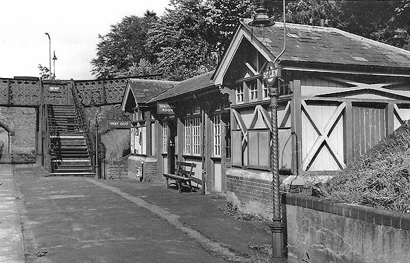Sidley station down platform building c 1950s. This building was originally only a waiting room but following closure of the street level building in 1938 it was internally rebuilt as a waiting room, porters' room and store.