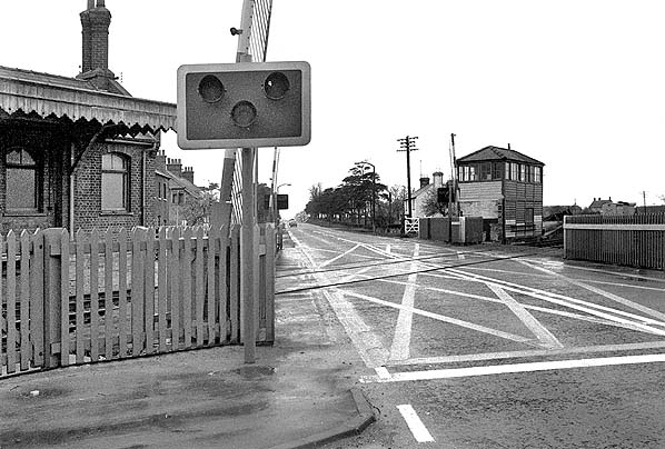 The London Road level crossing at Six Mile Bottom station in November 1975. Photo by David Burrows from his Flickr photostream