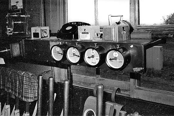 The signal aspect indicators in Six Mile Bottom signal box in November 1975. The numbers on them correspond with those on the track diagram. Photo by David Burrows from his Flickr photostream