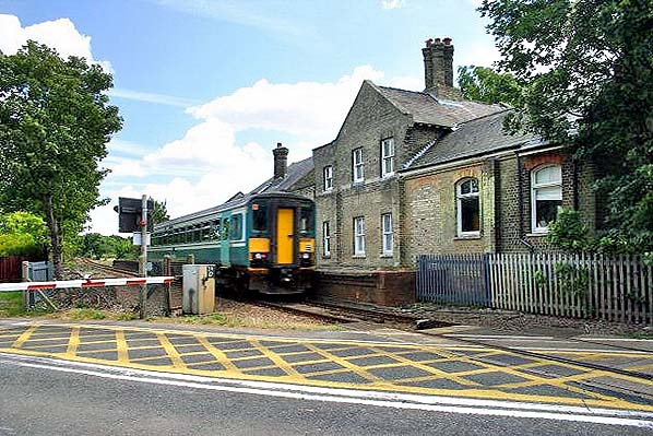 A Sprinter in Anglia Railways livery passes through Six Mile Bottom station in 2007. Photo by Brian Jones, reproduced from Wikipedia under creative commons licence.