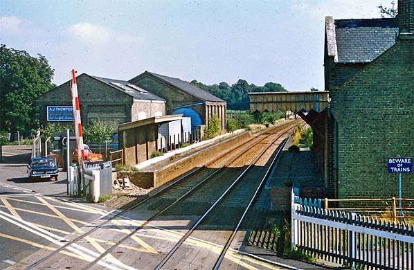 Looking north-east at Six Mile Bottom station from the signal box in September 1977. Photo by Geoff Skelsey