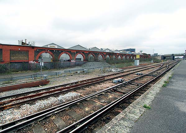 The shell of the Maypole Dairy loading shed seen from the Brentford branch platform in March 2013.