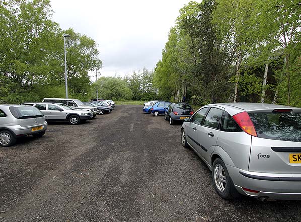 St Boswells station site of the up platform looking north in May 2011. The trees are on the bay platform and the engine shed can be seen on the right.