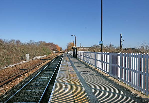 ![]() Station Name: STEWARTBY Station still open but included for completeness ![]() Stewartby station looking north-east from the Bletchley platform towards the Green Lane level crossing in February 2014. The Bedford platform can be seen in the distance on the far side of the crossing.