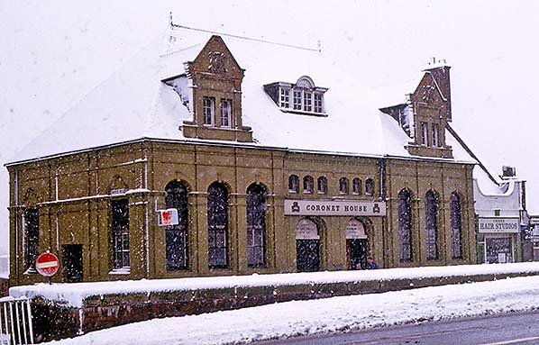 Stratford Market station seen from the High Street on a winter day in December 1981.