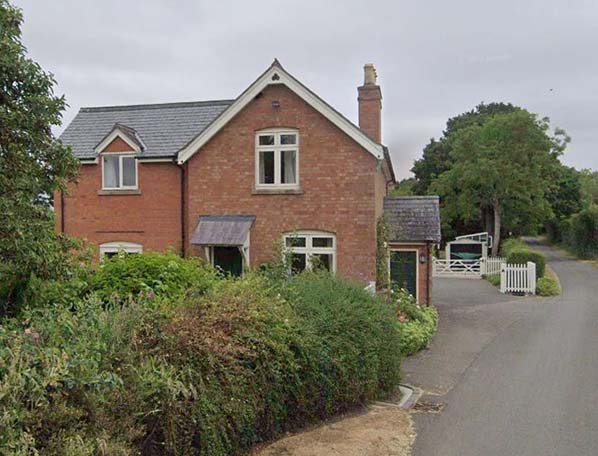 The scene at Old Gated Road today, note the trefoil in the roof gable. The track ran through where the white gates are and this section is now a private driveway.