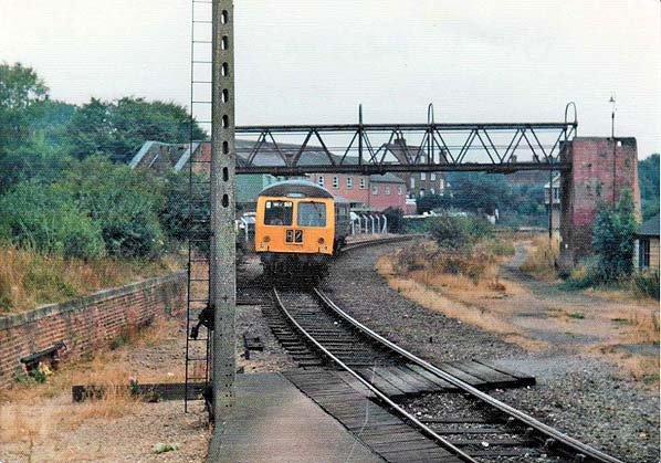 A class 105 DMU is seen approaching Sudbury station in Summer 1975. The disused goods dock on thge left may have been used for loading horses.