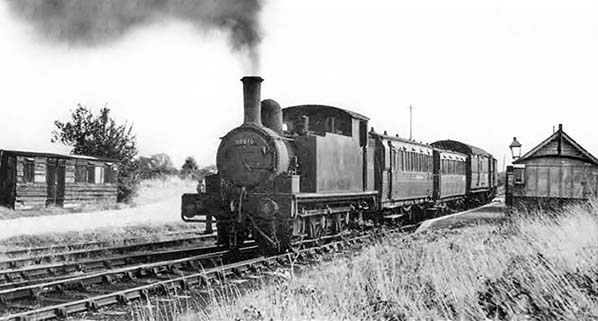 A Class J67 believed to be No. 68616 whiles away the time at Tollesbury with what is ostensibly a mixed train in August 1950. By this date there were two Down and three Up trains, all running as Class B mixed. The 'missing' Down train was a Class K goods, departing Kelvedon at 6.40am and with empty coaching stock attached for the first Up train of the day, 8.30am from Tollesbury. Unfortunately which train is shown in this photograph is not known. If it was the 10.10am ex- Kelvedon it sat at Tollesbury for no less than two hours before departing at 12.50pm. In the Down direction this train did not call at the wayside sidings (Heath, Church etc) but did call if required in the Up direction. If this is the train seen here it may explain why no goods wagons are present other than the brake van.