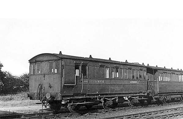 Six wheel Brake Third LNER No. 62261 at Tollesbury on 26 June 1948. Dating from 1896, it was originally GER No. 337 and then became Stoke Ferry branch No. 11. Note there was only one passenger door on each side. The Stoke Ferry branch was conductor/guard-operated, therefore this vehicle came to Kelvedon requiring no internal modification. However, the Stoke Ferry branch had standard height platforms so vehicles transferred to Kelvedon required modification. This was done by altering the suspension and fitting smaller diameter wheel sets, this being reasonably obvious in this photograph. The buffer beams had as a result to be raised slightly but the underframes remained a little higher from the rail compared to the ex-Wisbech stock and this is evident here. The only other modification was the fitting of steps more suitable for the low platforms. Soon after this photograph was taken this vehicle would become British Railways No. E62261. With its sister E62262, which was not identical, it would see use on the final passenger train in 1951. It was not withdrawn until October 1951 but is unlikely to have seen any use in the interim. There was a second identical vehicle, No. 62908, which ended its days on the Thaxted branch until that line was rocketed into modernity by the provision of ex-main line bogie corridor stock.