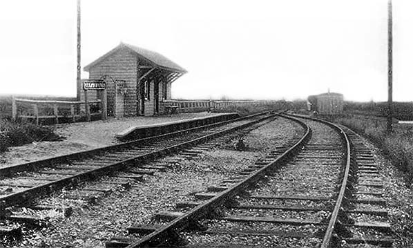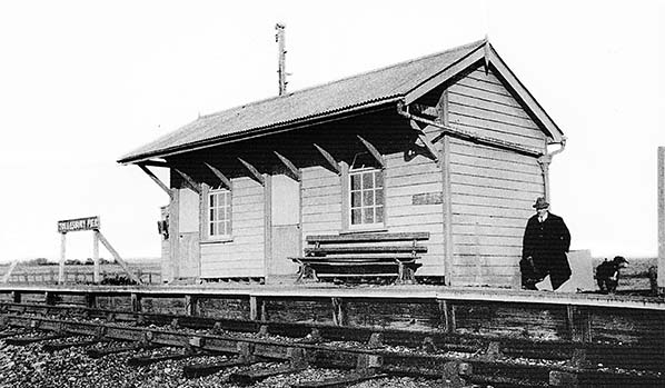 Photo from John Mann collection ![]() The desolate Pier station on an unknown date and facing toward the bufferstop at the end of the line. The infrequency of the train service plus the salty estuary air means one would not expect to see the railheads highly polished but here they don't show any evidence of being polished at all. This photograph therefore likely dates from the period trains called only when required, which was in fact for most of the short life of the extension. The fencing to the left shows signs of settlement, suggesting later in the life of the extension. As is evident, the station was provided with only a run round loop, no double ended siding as provided elsewhere along the line.