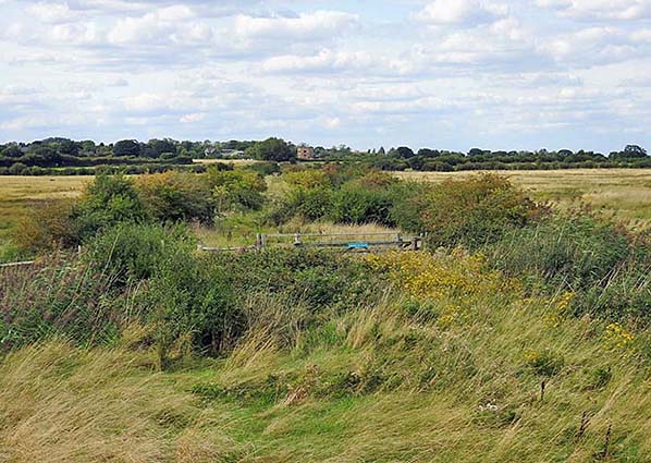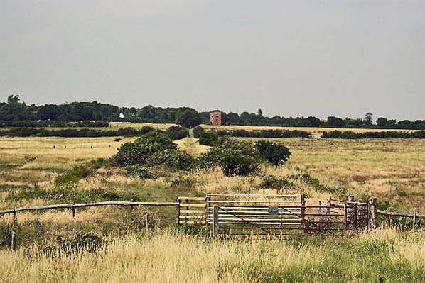 ![]() Looking from the sea wall over the site of Tollesbury Pier station in May 2005. The station was dead ahead, in the wider space between the bushes. In the distance the 1:50 gradient rising towards Tollesbury is evident while to its right stands the WWII naval watchtower aka 'The Radar Tower'. Some sources suggest the tower was used to control mines but this is not thought to be the case. A genuine Minefield Control Tower still exists at Burnham-on-Crouch and the 'minefield' was actually explosives detonated from the tower by electrical means. Click here for a close up view of The Radar Tower