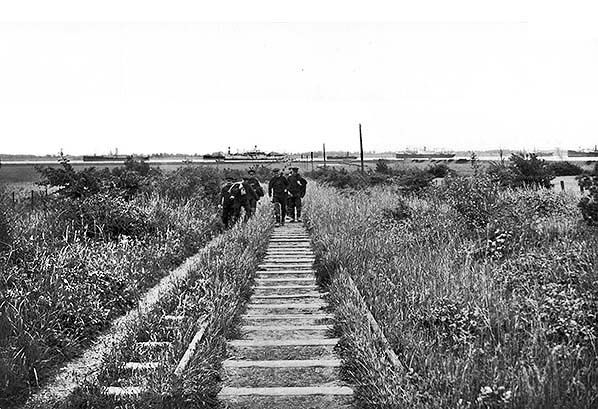 ![]() The section of pier removed during the Second World War as an anti-invasion measure with a few stumps of the removed section being visible. Sources vary being 1939 and 1940 regarding when this was done but it was most likely after the Fall of France in May - June 1940 which placed the enemy literally just across the English Channel. It was this advancement of the enemy which gave rise to Operation Dynamo, perhaps better known as the Dunkirk Evacuation. Hitler's invasion plans were found in Berlin by the Allies in 1945 and the initial seaborne landings would have occurred from Ramsgate around the south coast to Lyme Bay but the Brighton to Lyme Bay section was subsequently dropped due apparently to doubts about the ability of the Kriegsmarine to control that length of coastline. The Germans therefore had no plans to land at Tollesbury and indeed Tollesbury was, just, outside the area of the occupation zone as originally planned which was south of a line drawn between Maldon and Gloucester. Of course, the finer details of Hitler's invasion plan were not known at the time a section of Tollesbury Pier was removed. 'Anti-invasion' is something of a misnomer used as a convenient term and a little more detail is given in other image captions.