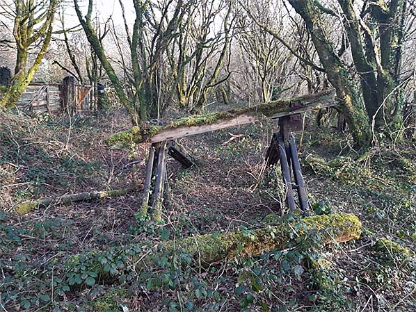 ![]() The surviving north end of the 50ft long platform in 2022, The south end of the platform constructed of ash and cinders eroded once the timber edge timbers rotted.