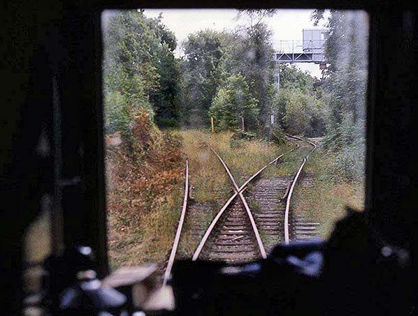 Photo by Dave Sallery from his Penmorfa web site ![]() Drivers eye view of the approach to Trawsfynydd Lake Halt in June 1994. The Halt is to the left and Reservoir Siding is to the right.