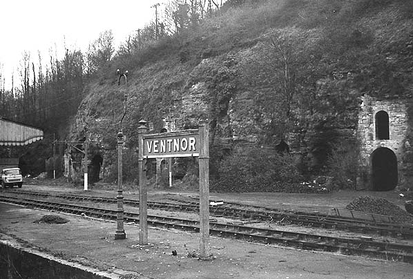 Ventnor Station in March 1968 - underground chambers used by the coal merchants can be seen in the quarry face. Photo by Nick Catford