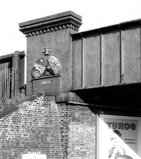 ![]() The bridge over Yorkshire Street, immediately south-east of Wardleworth station, was embellished with Lancashire & Yorkshire Railway crests. The photo was taken in October 1960. Photo by Ian G Holt