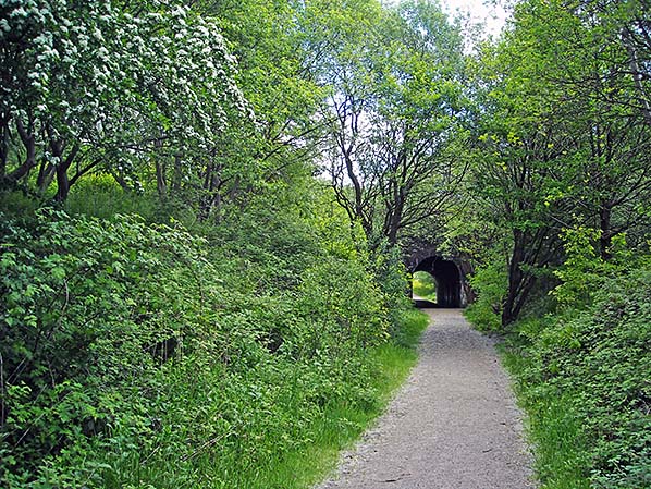 Looking east along the trackbed of the Facit Branch towards Whitworth Road Tunnel in June 2016.