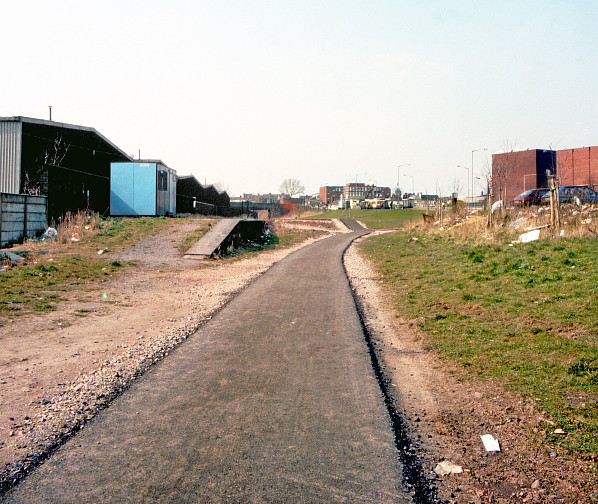 The north end of the station site in 1985 with a tarmaced pathway leading off towards Swn Village. Many such former rail sites have been treated in this way but very few have actually been returned to rail use.