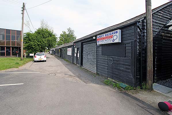 ![]() Looking north-east along Hortons Way in April 2014, this was the access road to the goods yard. Most of the timber buildings date from the first quarter of the 20th century but they have no direct connection with the railway or the station. Photo by Nick Catford Home Page