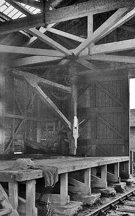 The interior of Westerham's small goods shed, seen here on the final day of the Westerham branch service. The capacity of the crane is not known but these goods shed cranes were generally, but by no means exclusively, within the 10cwt to 1½-ton range. The crane seen above was of wooden construction with iron or steel bracing and its capacity was probably no more than 1 ton. Clearly the shed was not in use that day although there was a van stabled just outside the shed and out of view to the right. The end of all BR services on the branch was not the end for Westerham goods shed as it later became the 'garage' for the Railmobile contraption.