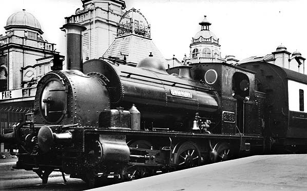 ![]() One of the tramway tank engines is waiting to take a boat train back to Weymouth Junction in August 1936. 2195 was built in April 1905 by the Avonside Engine Company, to a design by Eager for the Burry Port and Gwendraeth Railway in 1903. One of only 2 locos, this 0-6-0, outside cylinder saddle tank first carried the number 5 and the name 'Cwm-Mawr'. It was absorbed into the GWR and was renumbered to 2195 before passing to BR in 1948, along with its sister loco 2194 named 'Kidwelly' and then both were withdrawn in January 1953, to be broken up at Swindon Works shortly after.