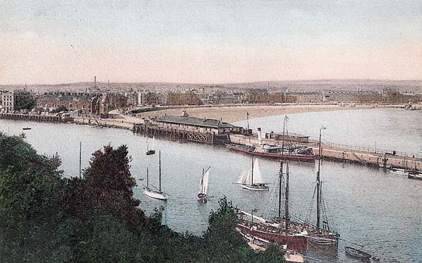 Weymouth Quay seen from The Northe in the early years of the twentieth century, before the Pavilion Theatre was built in 1908.