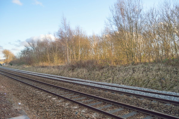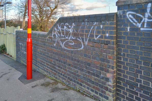 The only surviving part of the 1912 station is this short section of wall along Benson Road the ticket office was sited to the left.