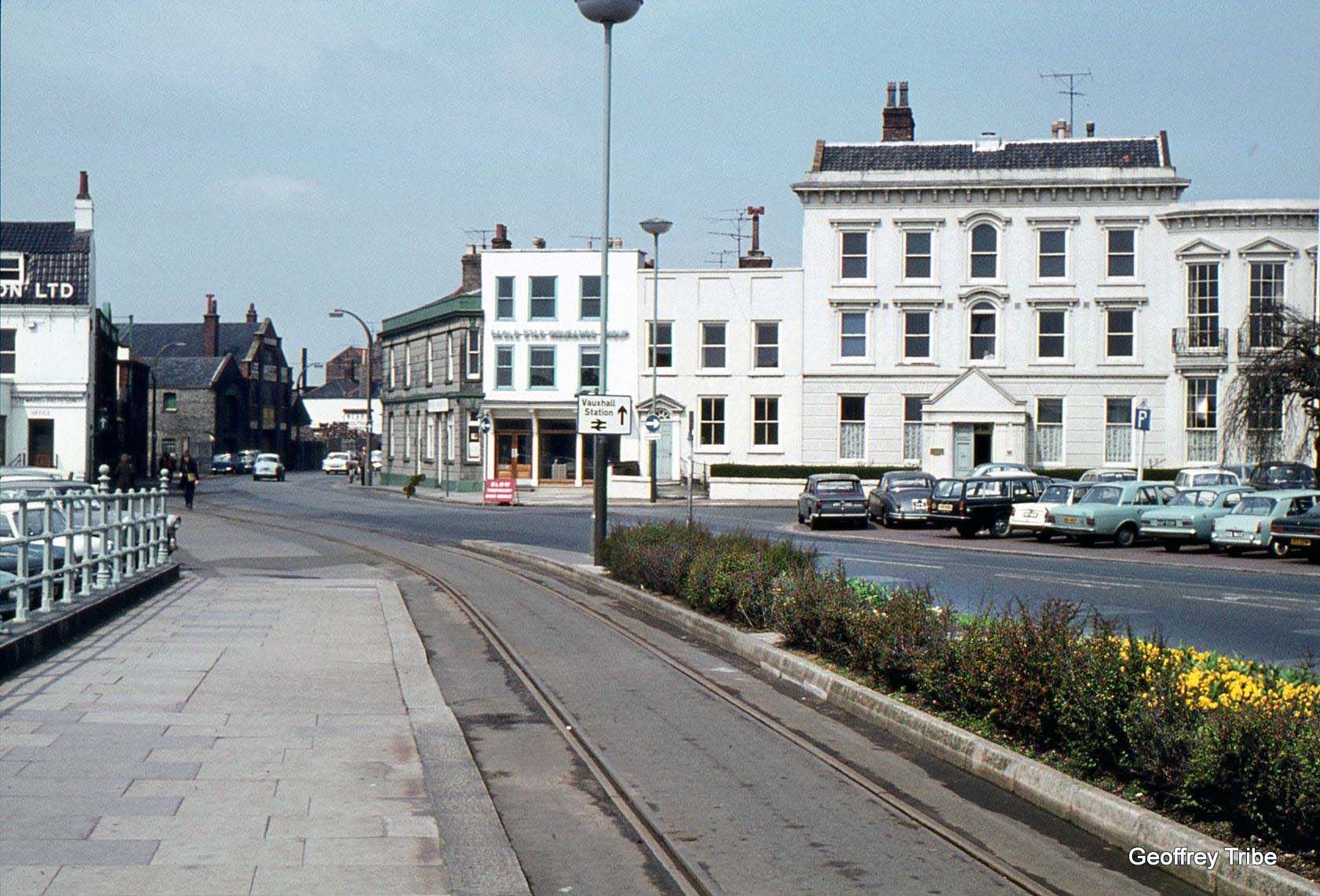 Whilst not directly relevant to South Town station, this view from 2 May 1970 showing part of the quayside tramway is worth including as the date was significant in the history of Yarmouth's railways. The camera is on Hall Quay and looking towards North Quay and, as the sign informs us, Vauxhall station. A few yards behind the camera is Haven Bridge, opposite which and on the other side of the Yare stood South Town station. On the day this photograph was taken, Great Yarmouth still had four railway stations; Vauxhall; South Town; Gorleston on Sea; Gorleston Links Halt although technically all the latter three were nothing more than halts by this time. The following day, albeit officially on and from 4 May 1970, Great Yarmouth would have just one station, Vauxhall, for 2 May was the final day of services on the Lowestoft - Yarmouth line. Behind the camera, the quayside tramway continued for some distance along the east bank of the Yare to the Fish Wharf. Ahead of the camera things were rather more complicated. Just out of sight around the bend, left background, a short spur left the tramway to serve sidings just north of Fishers Quay. These sidings were at a right angle to the Yare and accessed via a very sharp curve. Some 200 yards further on the tramway left the street to cross the Bure, which flows into the Yare nearby, via Vauxhall Bridge and thereafter connect into sidings on the east side of Vauxhall station. At the time of writing Vauxhall Bridge was still in situ and is one of the very few surviving reminders of the tramway. Just before the tramway left North Quay to cross Vauxhall Bridge was the junction with the section of tramway connecting to Beach station. This was the Yarmouth Union Railway and connected at Caister Road Junction with the Beach - Gorleston link line over Breydon Viaduct. It was on the Yarmouth Union section that the famous 'Hole in the Wall' leading to White Swan Coal Yard was located. Until closure of the Breydon link in 1953 it was possible to reach the quayside tramway from South Town, albeit involving two reversals, one at Gorleston North Junction (sometimes referred to as North Gorleston Junction) and one at Caister Road Junction although in practice the latter reversal was undertaken at Yarmouth Yard (Beach). After closure of Beach in 1959, White Swan Yard continued to be served until, it is thought, 1970 but of course from Vauxhall and involving a reversal in the middle of the road (North Quay). It is not known when the sidings near Fishers Quay ceased operation. At the time this photograph was taken, what remained of the quayside tramway was still in use. Also still active at this time was D2212, one of the Drewry Class 04 shunters fitted with cowcatchers and side skirts but by then she was in very scruffy condition and was withdrawn later in 1970. By this time, however, BR Class 03 shunters had become a common sight on the tramway but these ran without cowcatchers and side skirts. Class 03 continued to operate the tramway until it closed for good sometime around 1973/4. In later years the shunter working the tramway could usually be seen stabled between duties on the east side of Vauxhall station near the gate at the north side of Vauxhall Bridge. Today the segregated area in the foreground is entirely paved and the shrubbed border is now grassed. Apart from Vauxhall Bridge, remnants of embedded track can still be discerned at the Fish Wharf and The White Swan is still in business while the site of Caister Road Junction remained undeveloped at the time of writing. The curve of the northern end of Alderson Road offers another clue to the tramway's existence, this actually being on the Yarmouth Union section, but otherwise no evidence remains of this once famous quayside operation. A good selection of period cars can be seen including BMC, Triumph, Daimler, Volvo, Ford and Vauxhall. The two-tone car disappearing into the distance on the left is either a Wolseley 1500 or the somewhat more upmarket version the Riley One-Point-Five. Click here for a picture of a Drewry Class 04 diesel shunter complete with side skirts and cowcatchers at Yarmouth Vauxhall. These used to operate on the quayside tramway.