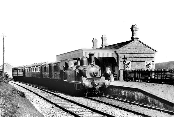 Abbotsbury station c. 1908. A train with three coached was rarely seen on the line in later years.