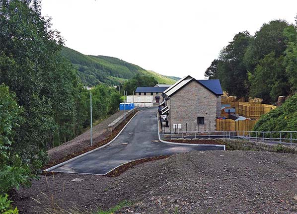 Photo by Mark Powell ![]() Development of new housing on the Aberfan station site is underway in July 2016. The only evidence of the former station is the ramp down to the down platform.