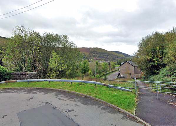 Photo by Mark Powell ![]() Looking north west along Railway Close which now stands on the site of Aberfan station in 2019. A garage is seen in the distance near the site of the bridge.
