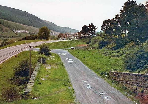 Photo by John Mann ![]() Photo by Phil Hudson ![]() ![]() Aberfan station looking south east from Railway Hill c1986. A widened Walter's Terrace now occupies part of the goods yard.