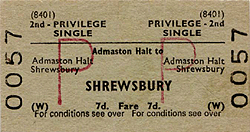 On 1 January 1948 Admaston became part of British Railways [Western Region] (BR[WR]). However services between Shrewsbury and Stafford were operated by the London Midland Region [LMR]. More BR[LMR] services called at Admaston than BR[WR] services.