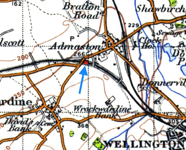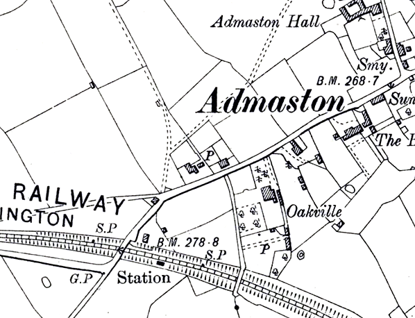 Admaston Halt opened as simply Admaston in September 1849. It was located on the south-western side of the settlement from which it took its name on the east side of Station Road which passed over the line on a bridge. Early maps show no facilities and it is likely that it would have been nothing more than a stopping place with access provided down to track level as the line was in a cutting at this point.