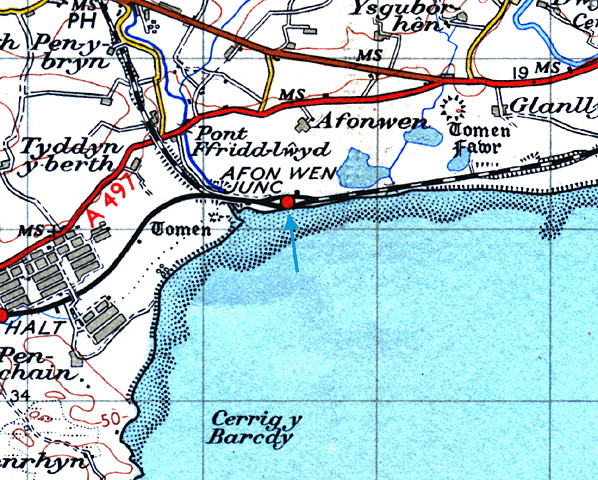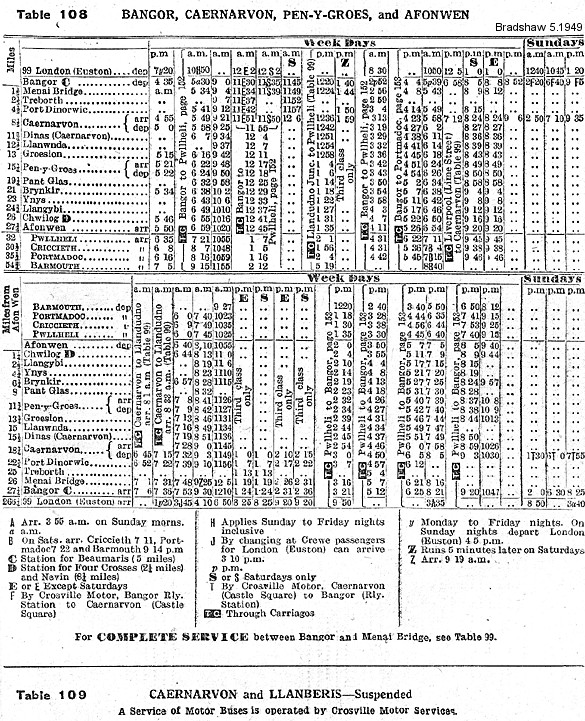 In 1939 Billy Butlin started the construction of a holiday camp a few miles west of Afon Wen, adjacent to the Pwllheli line, at Penychain. The camp had not been completed when the Second World War broke out on 3 September 1939 and it was taken over by the government for naval use. Scheduled passenger services were reduced on both lines during the war but |