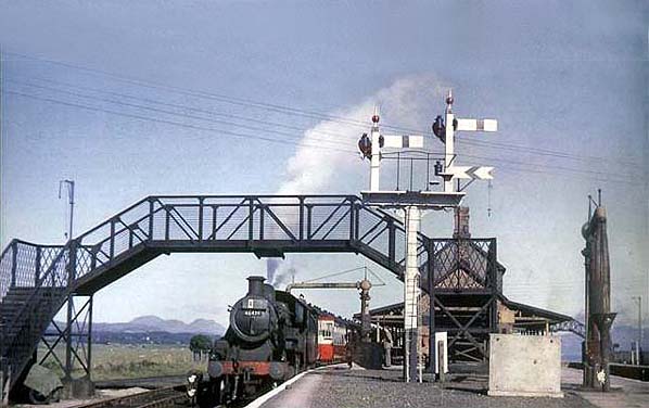 At the eastern end of the island platform another footbridge connected it to the southernmost platform (no.1). The arrangement of the footbridges was a little odd, as one footbridge at the west end of the station, spanning both platforms, would have sufficed. Platform 1 served the down (Dovey Junction) main line and was provided with a large brick waiting shelter. The signal |