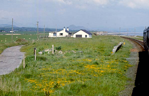 Afon Wen station, looking east from a passing train in May 1983. The buildings and platform 1 had been demolished by this time.