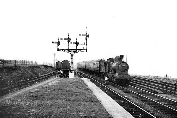 ![]() Station Name: AFON WEN![]() In August 1953 a Western Region train for Pwllheli arrives at Afon Wen station. The east end of platforms 2 (right) and 3 (left) are visible in the foreground. At the head of the train is an unidentified Dukedog locomotive. Introduced in 1936 the locomotive was a Collett rebuild incorporating Duke of Cornwall Class boilers and Bulldog Class frames for work on secondary lines. Commonly known as Dukedogs they were numbered in the 3200-28 series until 1946. They were then given the classification 2P and the number Series 9000-9028. It was built by the Great Western Railway Swindon works. The first twelve engines were named after Earls but this was short lived, the names being removed and transferred to Castle Class locos. These hybrids were sent to work on the Cambrian Coast lines in Wales where they proved a godsend to the hard-pressed locomotive department. With a yellow route availability, they were able to work over Barmouth Bridge and proved useful in their role. The first withdrawal was 9007 (3207), from Tyseley (Birmingham) shed, in July 1948, and the last two locos, 9014 and 9017 were withdrawn from Croes Newydd and Machynlleth sheds respectively in October 1960, thus being among the last outside framed locos working on British Railways. Locomotive 9017 is preserved. All 29 of the locomotives built passed into British Railways ownership. Photo by H C Casserley ![]()