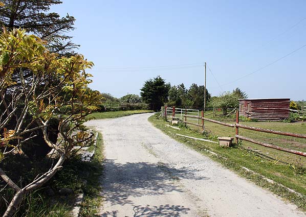 Looking west on 25 May 2012 along the track that led to the island platform of Afon Wen station.