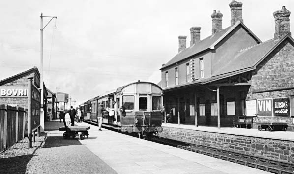 ![]() Looking west at Afon Wen station in the early 1970s. Platform 3 had lost its rails by this time.