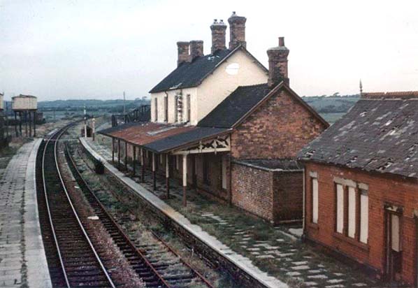 Looking west at Afon Wen station from the footbridge that linked platforms 1 and 2 around 1970. Only a bi-directional single track remained in use by this time.