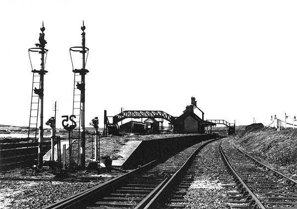 ![]() Station Name: AFON WEN![]() Looking east at Afon Wen station in April 1970. The picture shows the north side of the station and the face of platform 3. Platform 3 was designated as the up passenger loop but it was also used by terminating services from the Menai Bridge line. To the right of the up passenger loop line can be seen another track which was the up goods loop. These lines had been out of use since the signal box had closed in 1966. Only a bi-directional single track was in use in April 1971. Photo by John Mann ![]()