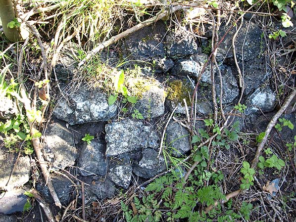 A section of the retaining wall that supported the pathway from Walsall Road to the up platform at Aldridge station seen on 3 May 2013.