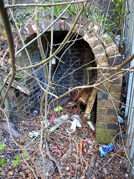 Brick arch containing the pipe which supplied the water tower on the up platform at Aldridge station seen on 3 May 2013.