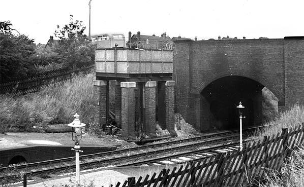 ![]() At Aldridge there was a water tank at the east end of the up platform. It is seen here after the station had closed in the summer of 1965. Photo from the John Mann collection ![]()
