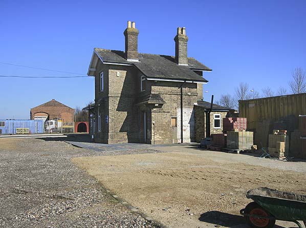 Algakirk & Sutterton station forecourt in March 2010, the goods shed is seen in the background.
