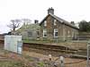 Allanfearn Station in March 2007 - the position of the station clock is visible in the centre of the station building. Marks on the right wall indicate the position of the signal box. The left side of the building appears to have been extended.
