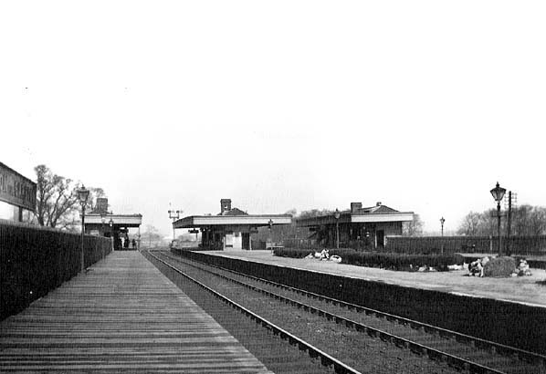built but the other two platforms which were perched on the side of the embankment were constructed of timber. The platforms where connected to each other by a subway at the north west end of the station. Booking facilities were at street level on the west side of the line. They consisted of a single storey wooden building in typical LNWR style. Facilities were also provided on the platforms. Again these were single storey and timber built and they included awnings to give passengers protection from the weather.