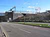 The site of Allerton station looking north west in July 2006. The station site is now occupied by the high level platforms of Liverpool South Parkway Station. Access to street level was at the far end of the station and consisted of steps leading down to a subway. The modern station has a footbridge that has both lifts and stairs.
